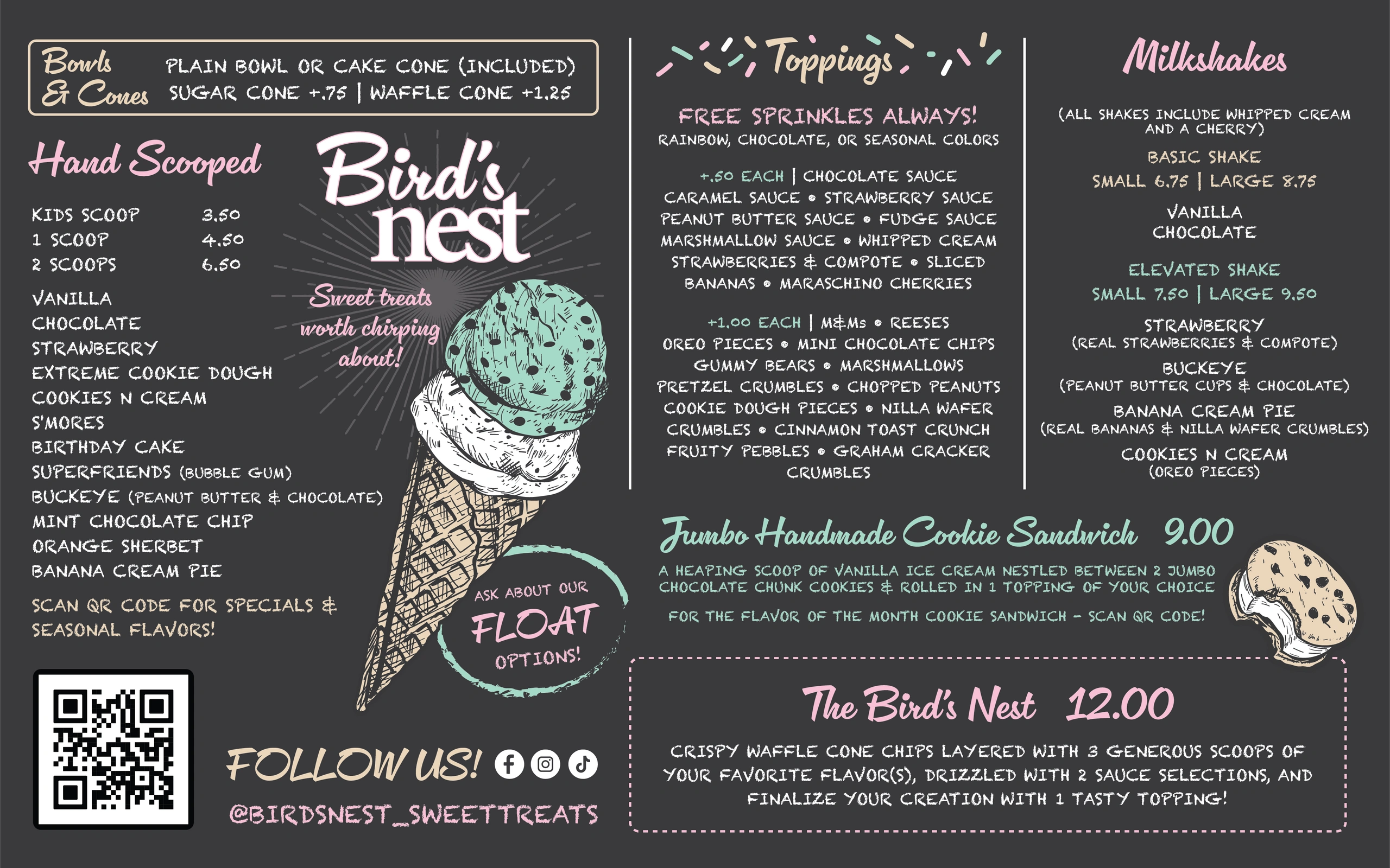 At Bird’s Nest, we believe ice cream is more than just dessert; it’s an experience that brings people together. Whether you’re indulging in classic favorites or venturing out to discover new flavors, our goal is to elevate your sweet moments!